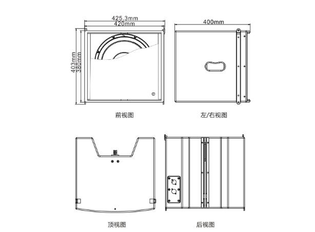| 最大聲壓級(連續(xù)/峰值):126dB/132dB | 連接件:2×NEUTRIK NL4MP四芯插座,1+1- | 尺寸(H×W×D):403×425.3×400mm |